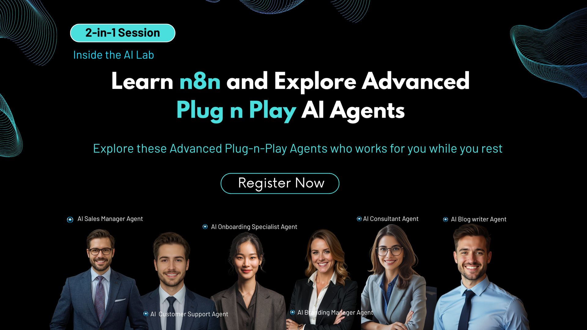 In this exclusive session, you’ll learn n8n — the no-code workflow tool powering next-gen automations — and explore 12+ Advanced Plug n Play AI Agents built for real-world roles like Sales, Branding, Consulting, and Support.